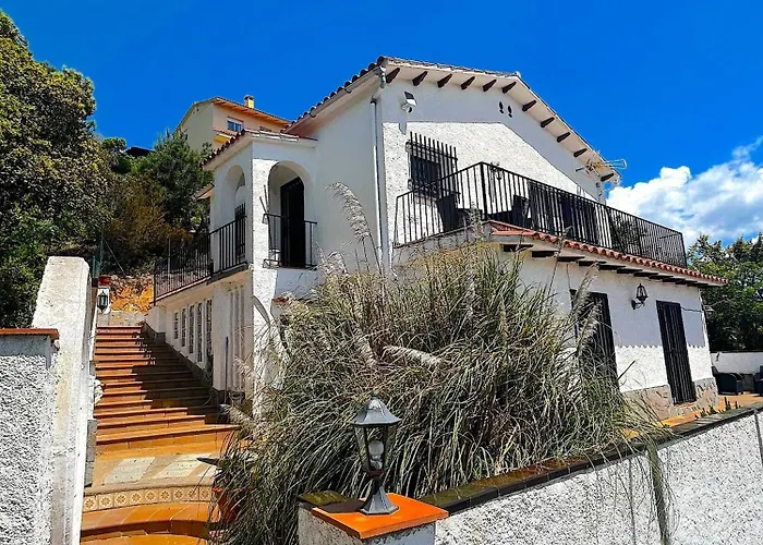 La Villa Blanca Lloret De Mar, Barbacoa, Vistas Al Mar Lloret Blau, situada a 3 km del Water World Lloret, ofrece una terraza con vistas al mar. Con vistas a las montañas, la villa está situada a unos 15 minutos en coche del Castell de Sant Joan.